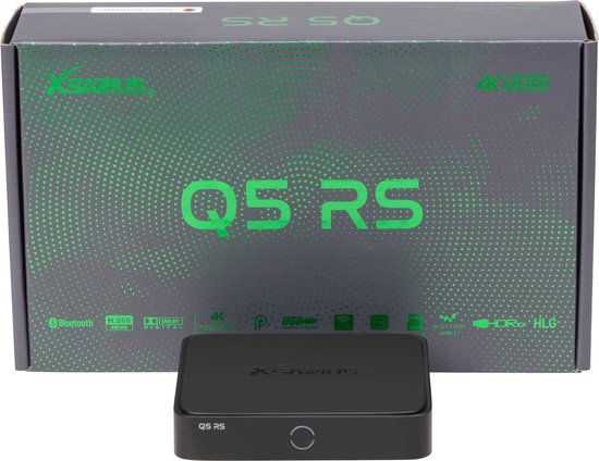 Le Xsarius Q5 RS 4K UHD Médias Streamer avec l’exclusif PremiumTV+ est un lecteur multimédia avancé de la série Q. Avec son puissant processeur quadricœur, 1 Go de RAM, 8 Go de stockage Flash et son système d’exploitation Android, le Xsarius Q5 RS offre une expérience utilisateur rapide et fluide. Profitez d’une résolution 4K UHD d’une netteté remarquable et de la prise en charge de HDR+, HLG et Dolby Digital, pour profiter d’une qualité d’image et de son impressionnante. Avec des options de connectivité polyvalentes et des fonctionnalités utiles, le Xsarius Q5 RS est le choix idéal pour les amateurs de divertissement.